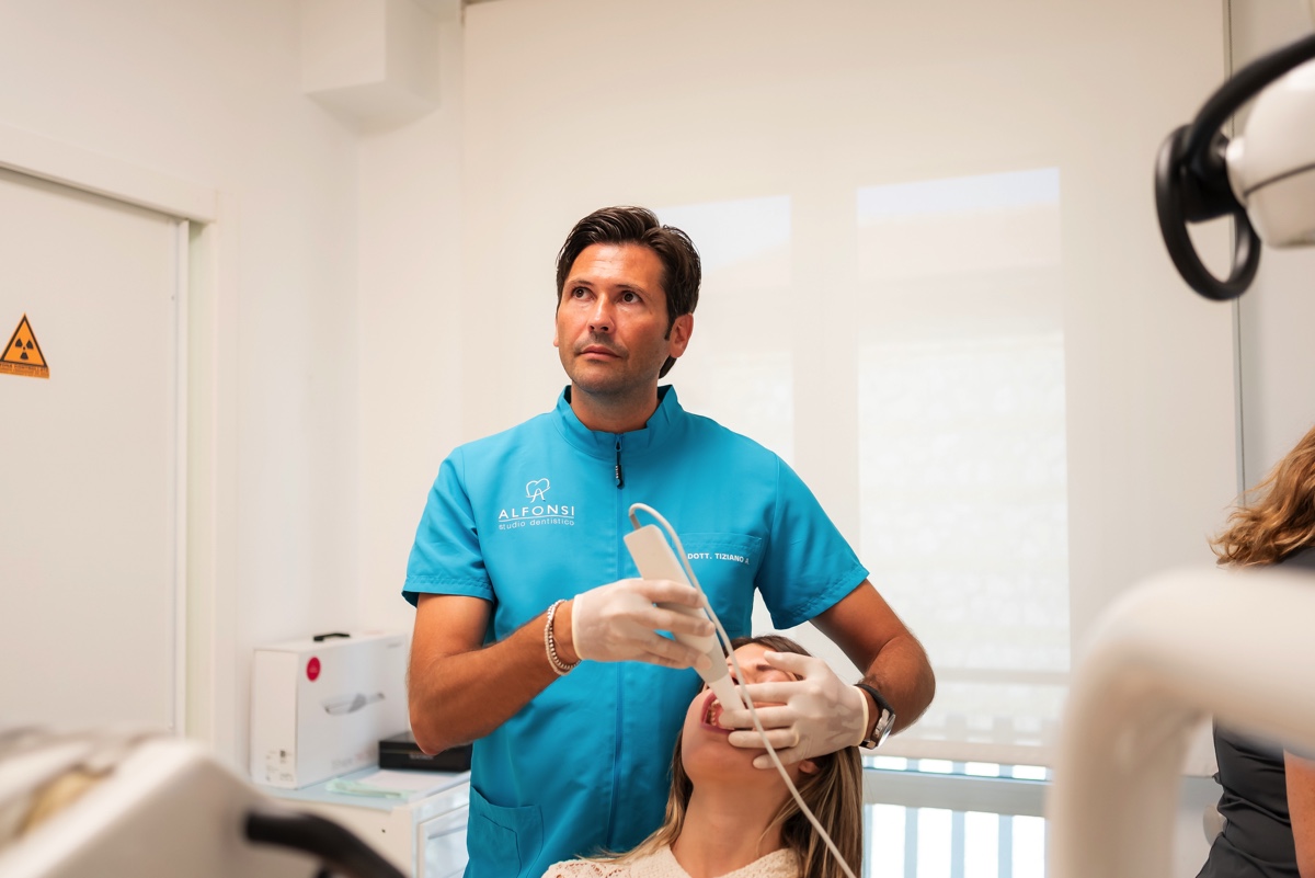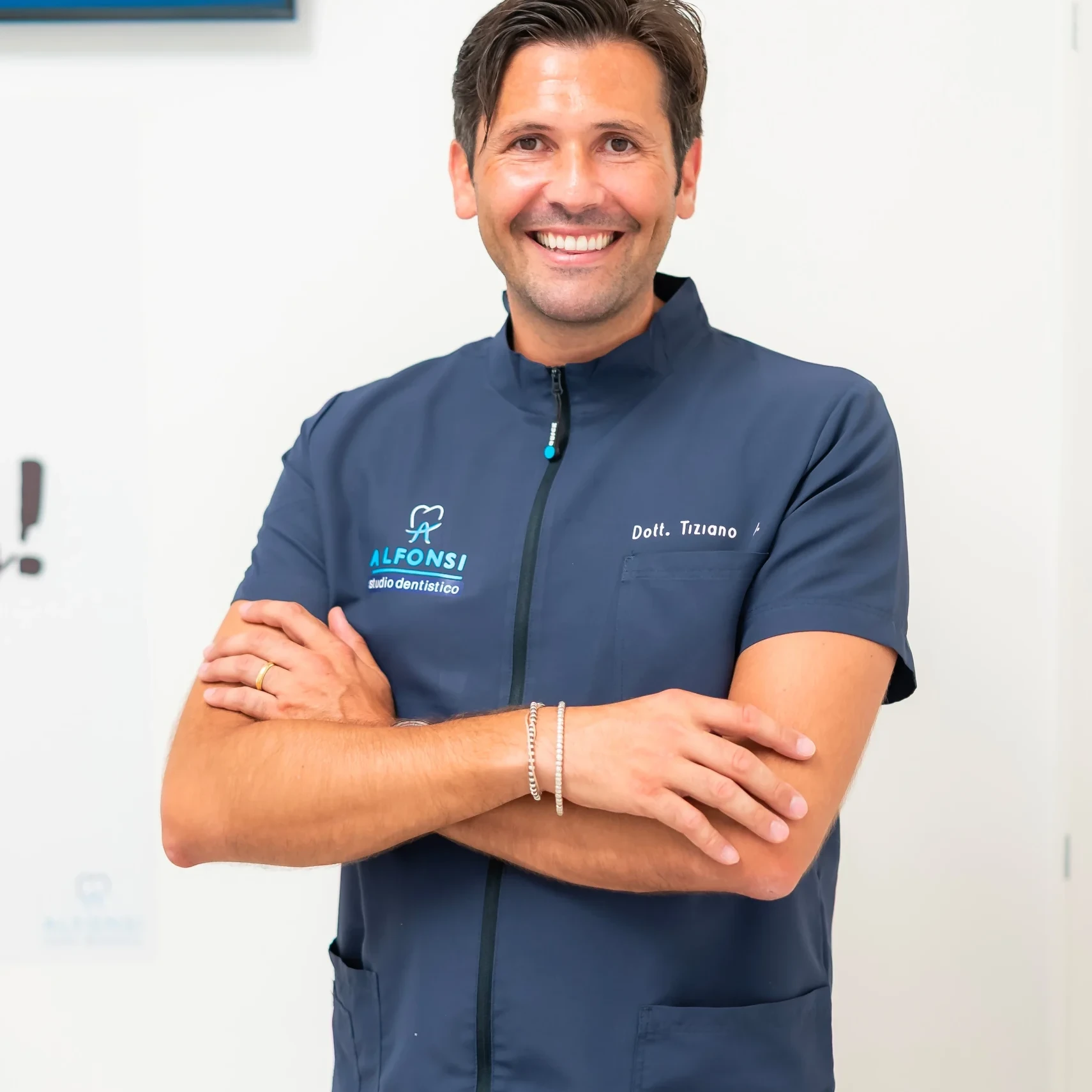 Tiziano Alfonsi è il punto di riferimento dello Studio Alfonsi, apprezzato dai pazienti per la sua competenza clinica, l’approccio empatico e la capacità di integrare innovazione e tradizione. Laureato in Fisioterapia e in Odontoiatria, ha costruito un percorso formativo multidisciplinare che gli consente di considerare il paziente nella sua interezza, valorizzando il legame tra salute orale e benessere globale. Ha frequentato corsi di perfezionamento in Italia e all’estero, con particolare focus su implantologia ed estetica dentale. Il suo approccio porta nuova linfa allo studio, offrendo soluzioni personalizzate e all’avanguardia.